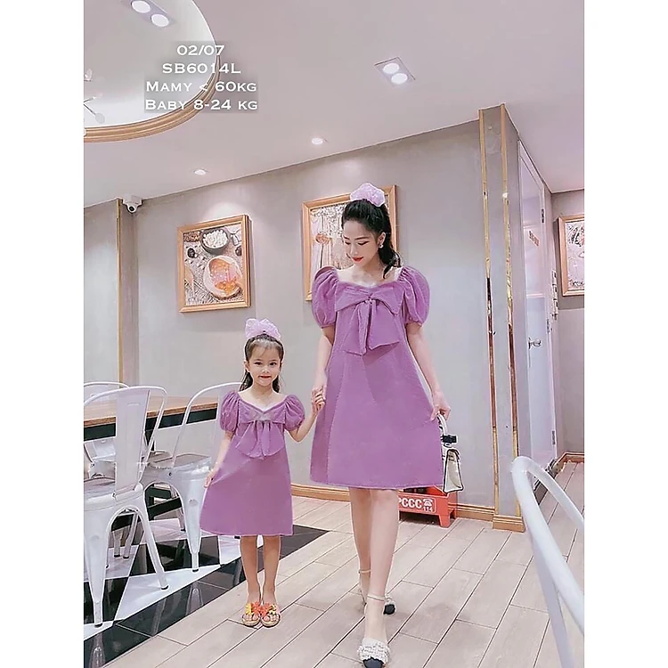 combo 2 đầm nơ tím hottren mẹ và bé gái
