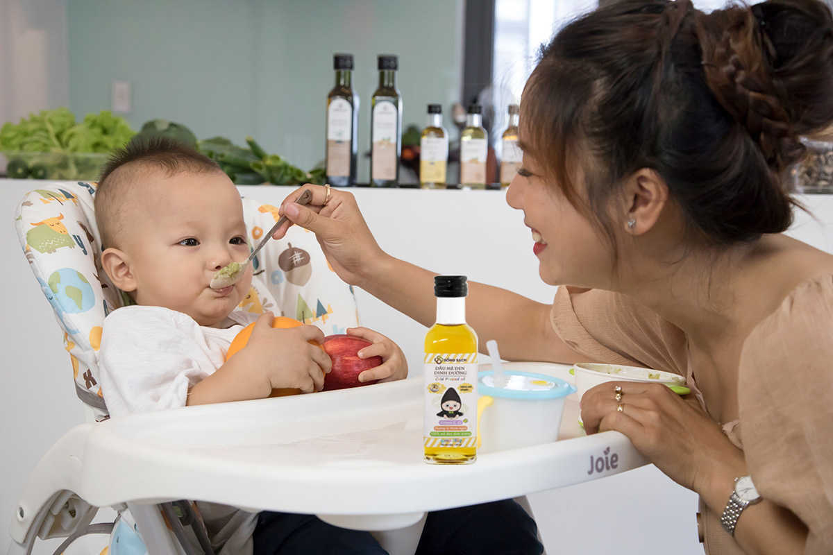 - Sử dụng dầu mè đen ăn dặm trực tiếp, nêm, nấu thức ăn cho bé, bổ sung vào bột, cháo ăn dặm
