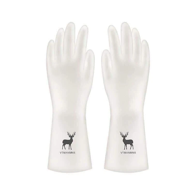 Găng tay con Hươu màu trắng đục, được làm từ cao su cao cấp nên có độ bền và rất dẻo dai giúp các bà các mẹ thoải mái tiếp xúc với những hóa chất gây hại.