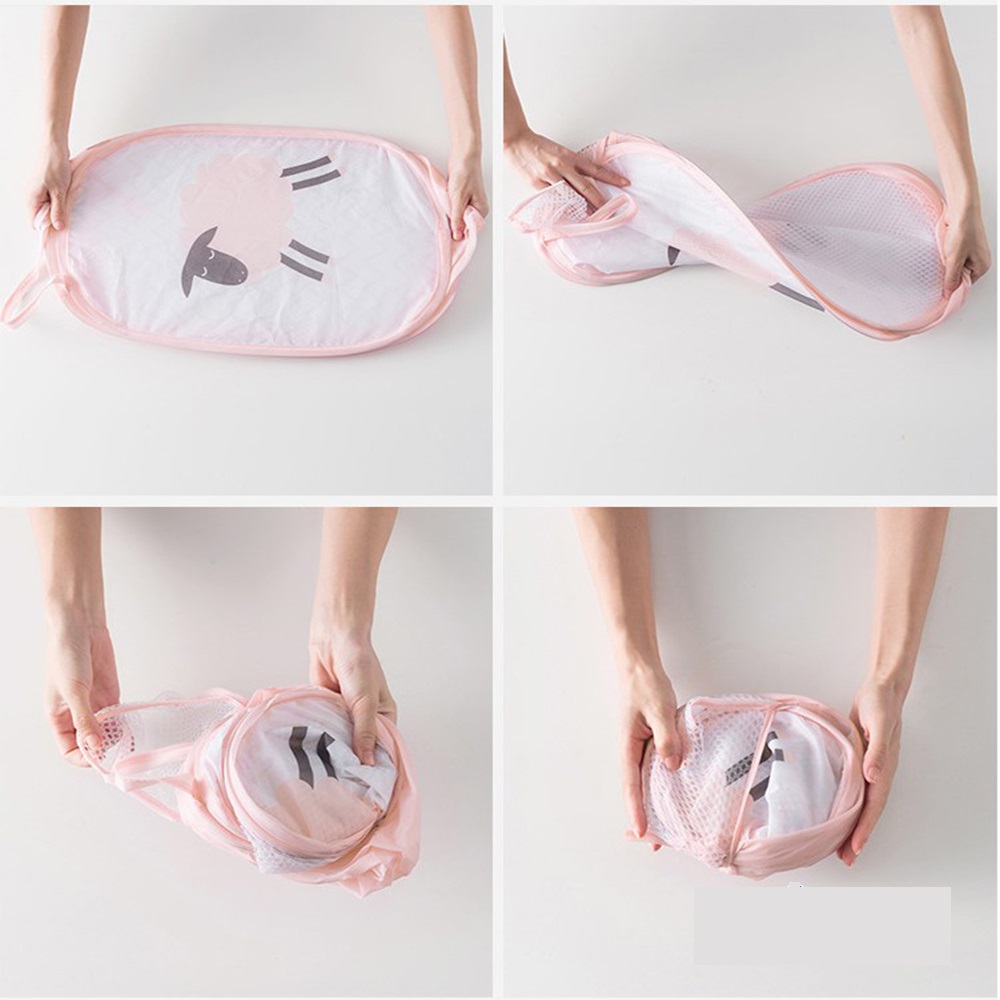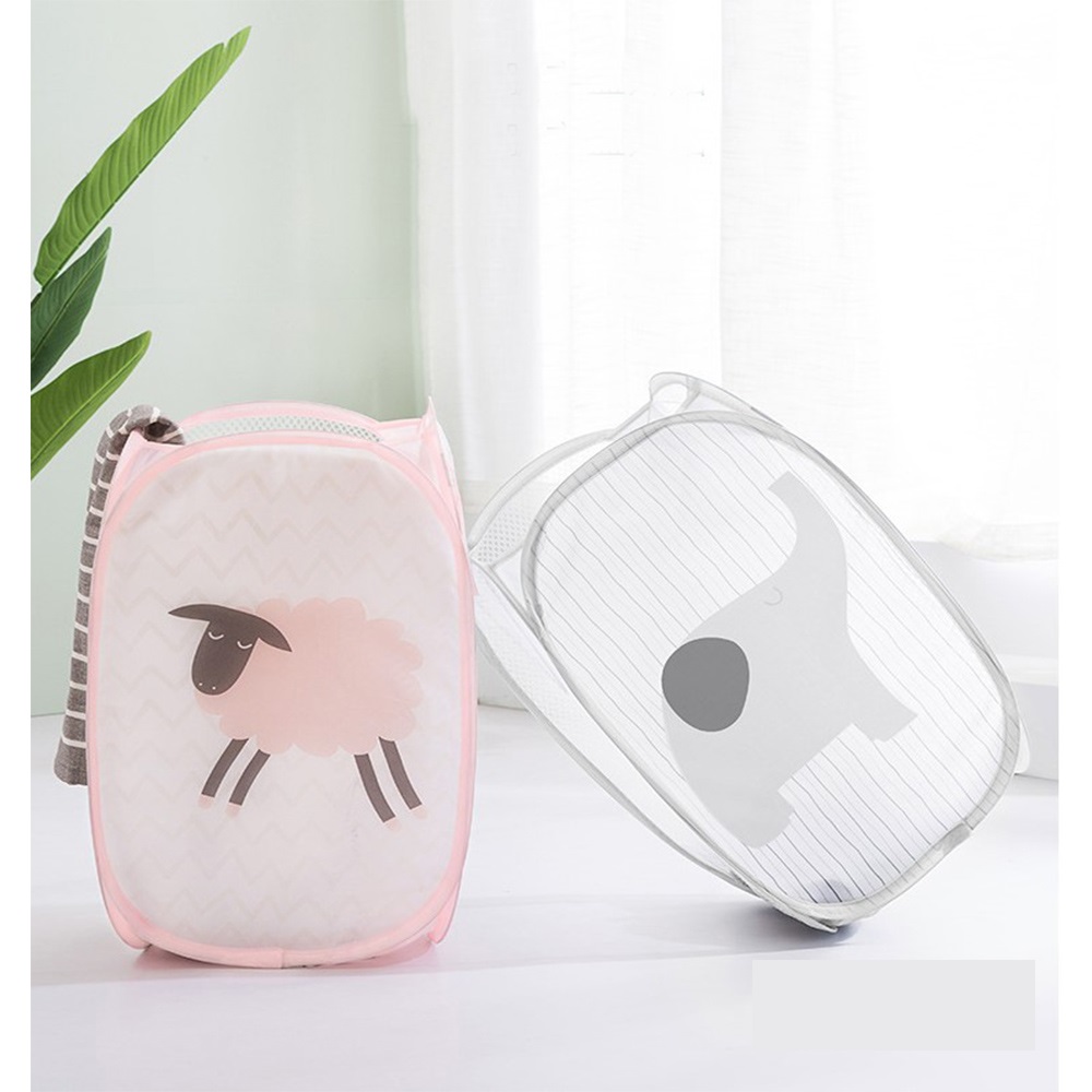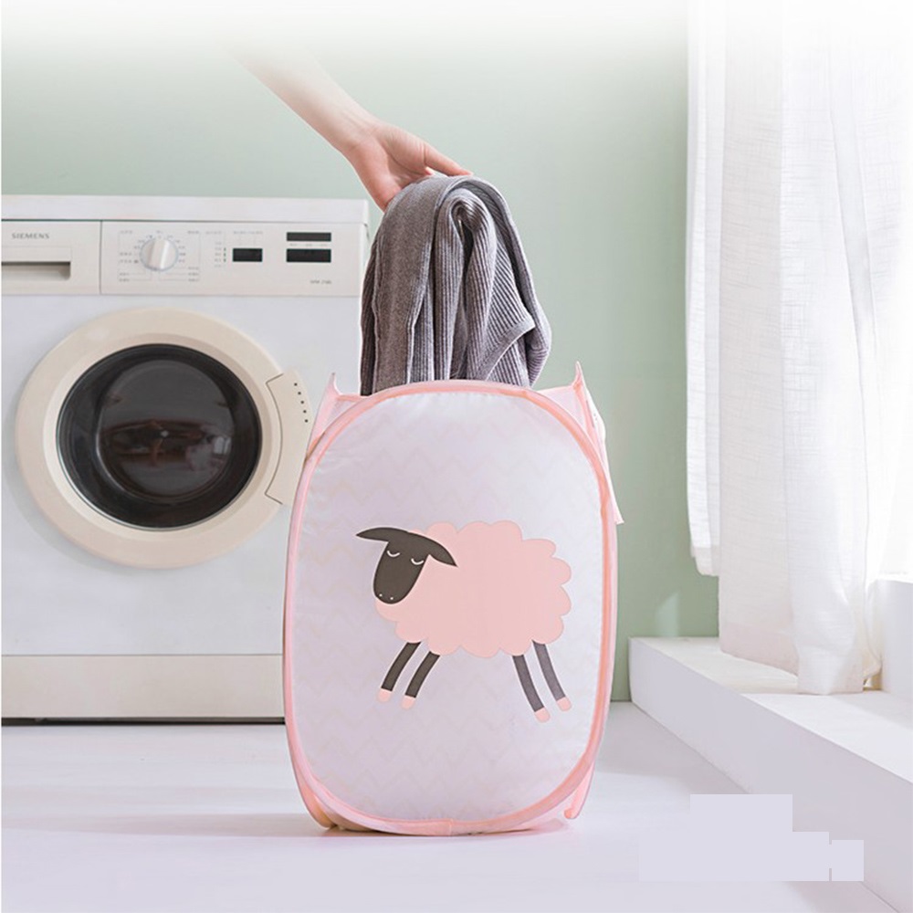 Giỏ, Túi, Rổ, đựng đồ chơi , đồ giặt, đồ dơ, gấp, xếp gọn gàng có quai xách tiện dụng hình hoạt hình cute dễ thương_HL033(hồng hoặc trắng)