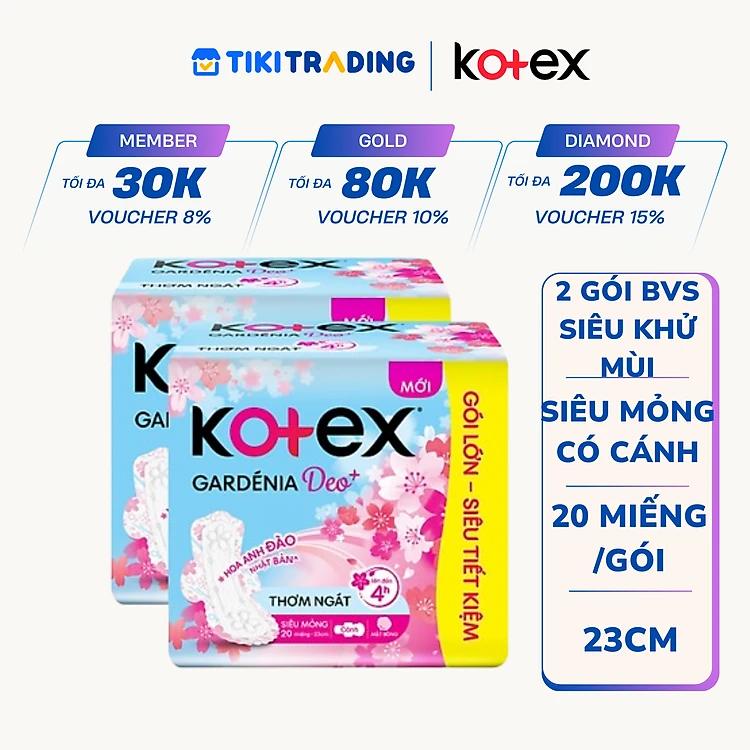 Combo 2 gói băng vệ sinh Gardenia Deo+ - Hoa Anh Đào siêu mỏng cánh 23cm (20 miếng/gói)