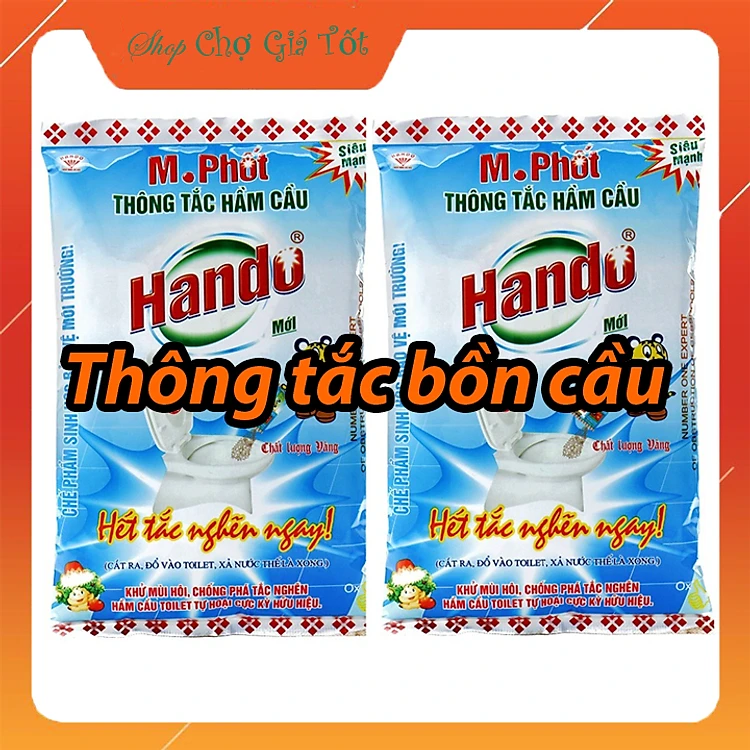 Combo 2 gói bột thông tắc bồn cầu bể phốt Hando 300Gr