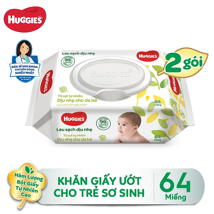 02 gói Khăn giấy ướt sơ sinh Huggies gói 64 tờ