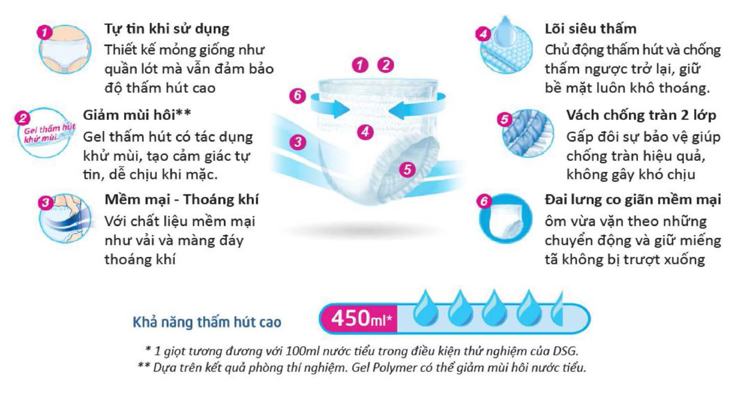 - Với thiết kế như quần lót, mỏng và có độ thấm hút cao, tã quần DayPants giúp người dùng tự tin trong các hoạt động hàng ngày.