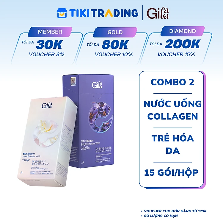 COMBO 2 HỘP NƯỚC UỐNG COLLAGEN GILAA SIÊU PHÂN TỬ 300DA TRẺ HÓA (20g x 15 gói/hộp)