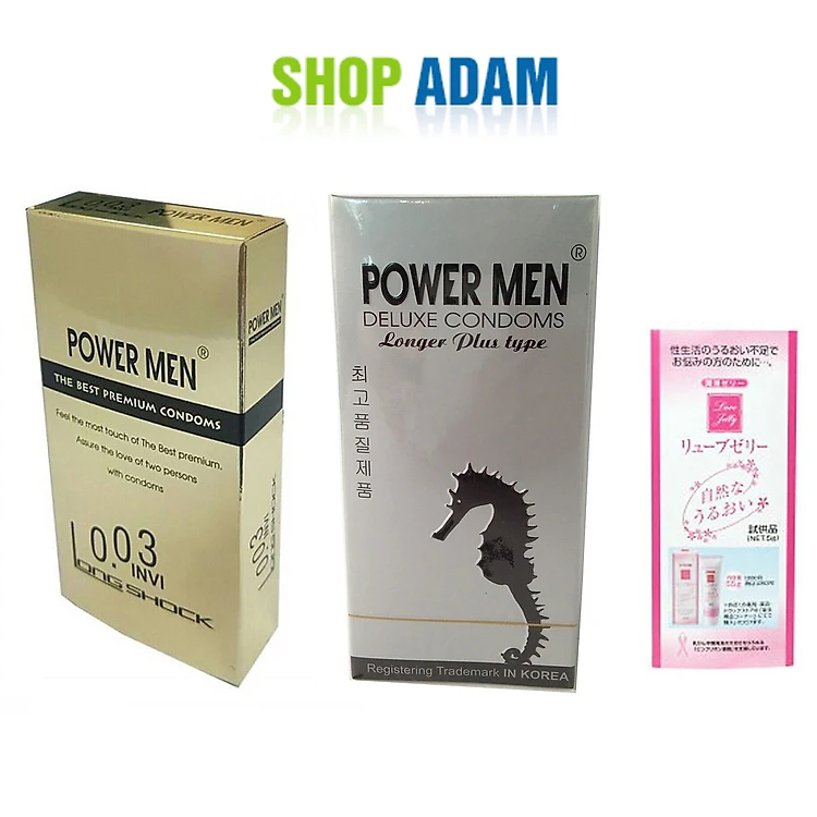 Combo 2 Hộp Bao Cao Su Gai Kéo Dài Power Men Cá Ngựa Xám Longer Plus Type + BCS Siêu Mỏng Chống Xuất Tinh Sớm Power Men 0.03 Invi - Tặng Kèm Gel Nhật- Che Tên Sản Phẩm