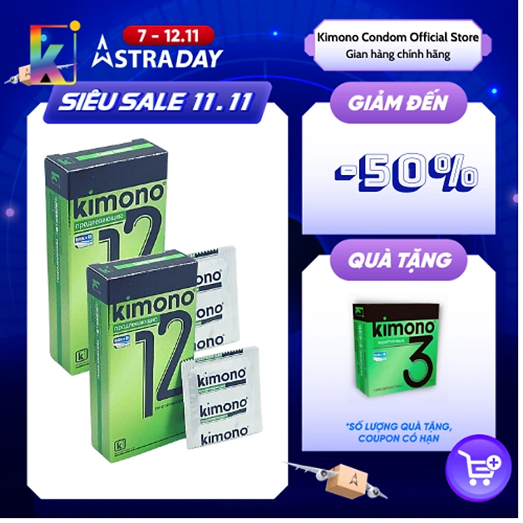 Combo 2 Hộp Bao Cao Su Kimono Green 0.03mm – Siêu Mỏng, Kéo Dài Thời Gian - Loại 12 bao/hộp