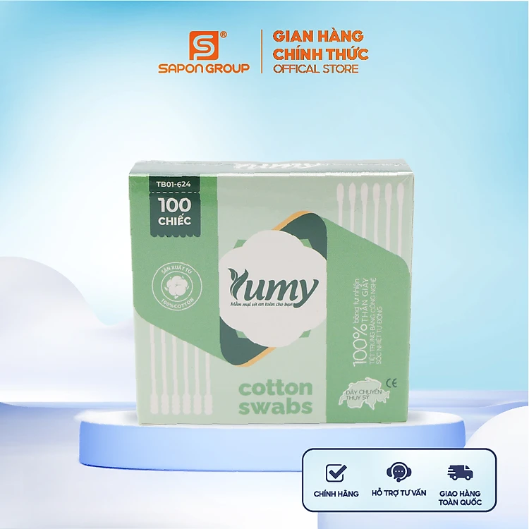 Combo 2 hộp bông ngoáy tai YUMY 100 chiếc/hộp thân giấy cho người lớn (TB11_624)