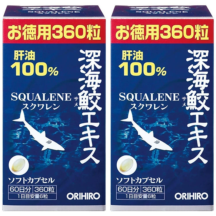 Viên uống dầu gan cá mập Orihiro (mọi người hay gọi là sụn vi cá mập) được chiết xuất từ dầu gan cá mập có chứa đến 99.6% dưỡng chất Squalene - một dưỡng chất có trong gan cá mập đã giúp loài cá này sống lâu, sống khỏe mà không hề bệnh tật, đã được khoa học chứng minh có giá trị rất tốt cho sức khỏe con người.