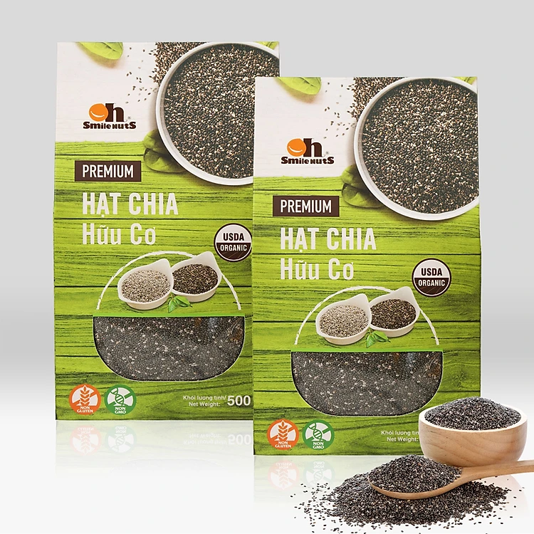 Combo 2 hộp Hạt Chia Đen Hữu Cơ Smile Nuts 500g - Nhập khẩu từ Nam Mỹ (Hạt Chia 100% Organic, hạt sáng, nở đều, không lẫn tạp chất)