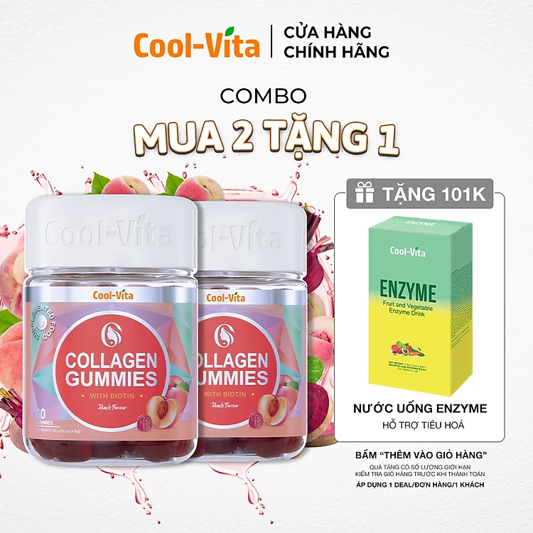 Combo 2 Hộp Kẹo Dẻo Collagen Hỗ Trợ Trẻ Hóa Sáng Da - Cải Thiện Sức Khỏe Tóc Móng Vị Đào Kết Hợp Biotin, Vitamin C & Vitamin E Coolvita (60 viên x 3g)/hộp