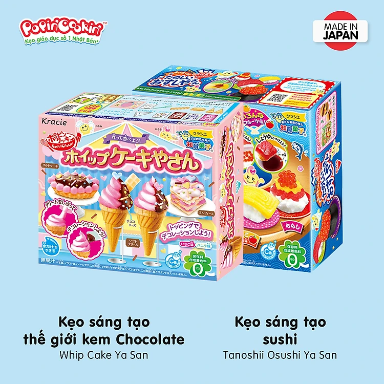 Combo 2 hộp kẹo Popin Cookin đồ chơi ăn được gồm: Kem Chocolate + Sushi / Cơm Bento / Bánh Donut