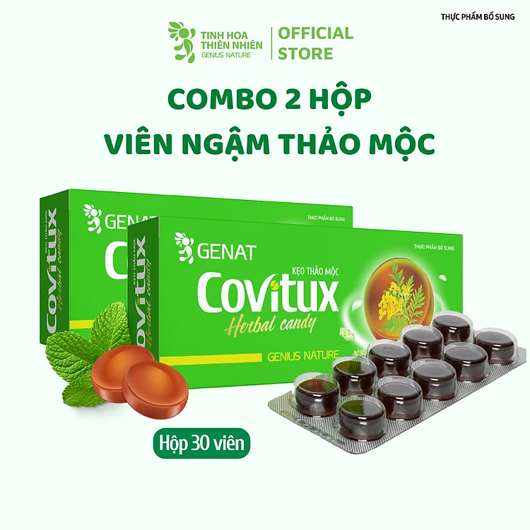Combo 2 hộp - Kẹo thảo mộc Covitux (30 viên) - Genat - Tinh hoa thiên nhiên