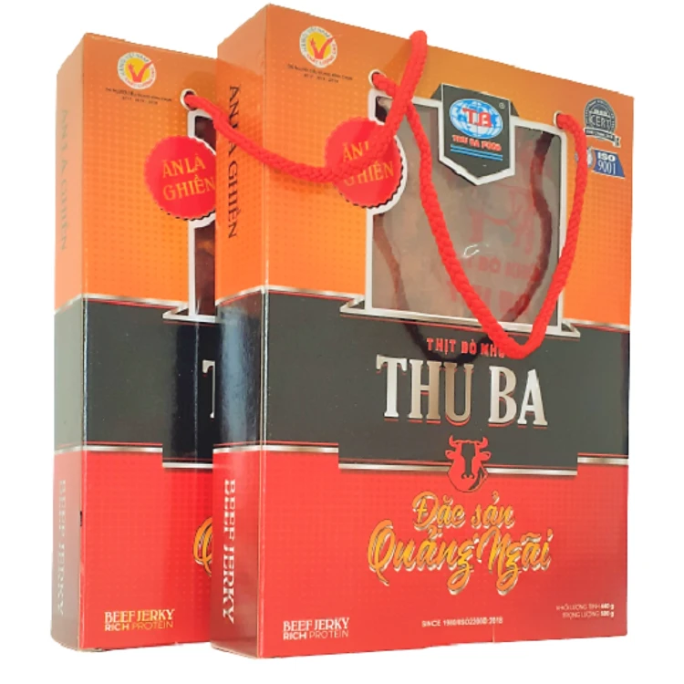 Quà Tết 2023 cho Sếp, đối tác làm ăn. Combo 2 hộp khô bò miếng (lát) hiệu Thu Ba chính hãng 500gr x 2=1kg, quà Tết, sinh nhật, ăn vặt, picnic