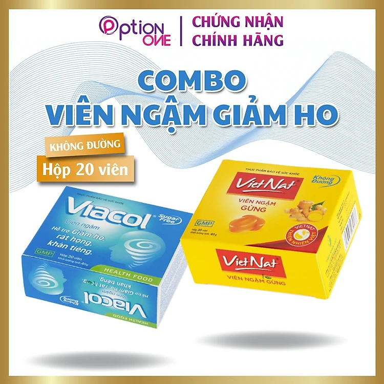 [COMBO 2 HỘP KHÔNG ĐƯỜNG] Kẹo ngậm Viacol Vietnat 20 viên - gừng Vietnat 20 viên giảm ho rát họng