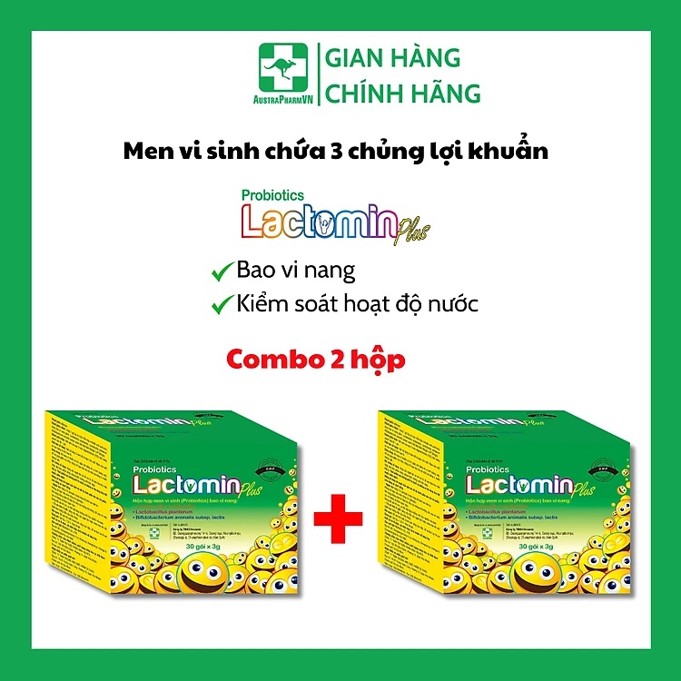 Combo 2 hộp Men Vi Sinh dạng bột thơm ngon LACTOMIN PLUS - Chính Hãng Hàn Quốc - Bổ sung 3 chủng lợi khuẩn bao vi nang