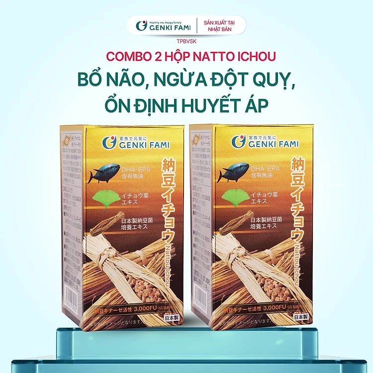 Combo 2 Hộp Natto Ichou Phòng Ngừa Đột Quỵ Genki Fami, Nhật Bản Hộp 90 Viên