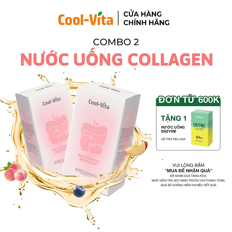 Combo 2 Hộp Nước Uống Collagen Peptide 3000mg Coolvita Hỗ Trợ Trẻ Hóa Sáng Da, Hỗ Trợ Dưỡng Tóc và Móng Kết Hợp Vitamin B3 (45ml× 7 túi)/hộp
