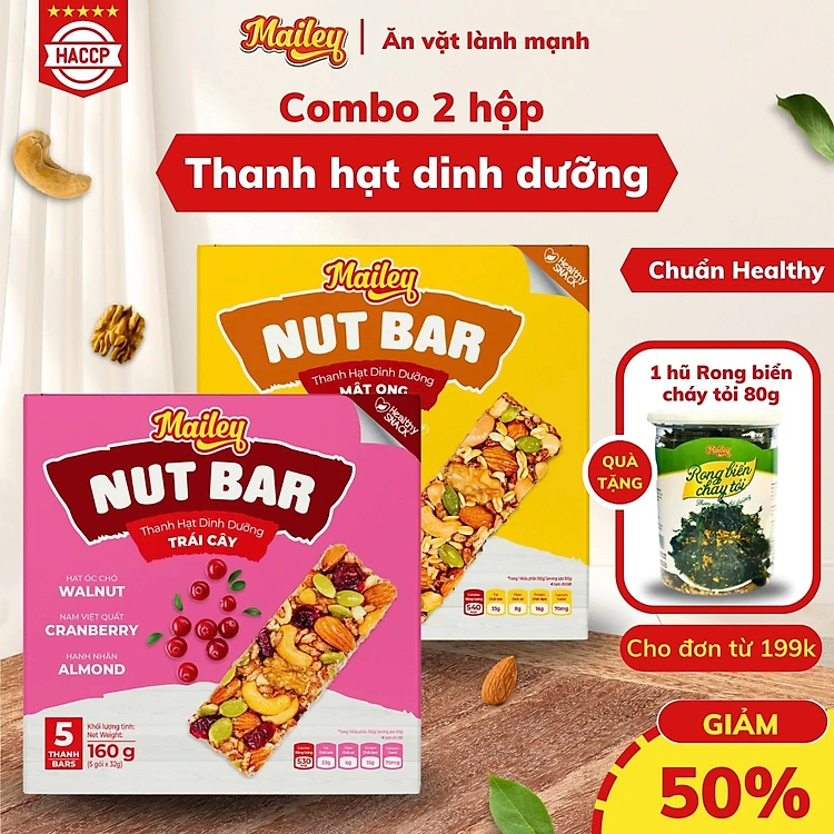 [COMBO 2 HỘP] Thanh hạt dinh dưỡng NUT BAR MAILEY mật ong/trái cây - Bánh hạt dinh dưỡng giảm cân ăn sáng
