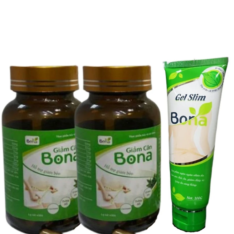 Combo 2 Hộp Thực Phẩm Bảo Vệ Sức Khỏe Viên uống hỗ trợ Giảm Cân Bona, Tặng Kèm Gel Slim Bona - Hỗ Trợ Kiểm Soát Cân Nặng An Toàn, Hiệu Quả