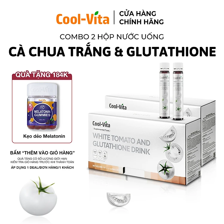 Combo 2 Hộp Nước Uống Cà Chua Trắng Hỗ Trợ Sáng Da Kết Hợp Glutathione, Niacinamide, Collagen Peptide, Vitamin C Coolvita Hỗ Trợ Đều Màu Da Dưỡng Da Ẩm Mịn (6 chai × 25 ml)/hộp - Thực Phẩm Bổ Sung