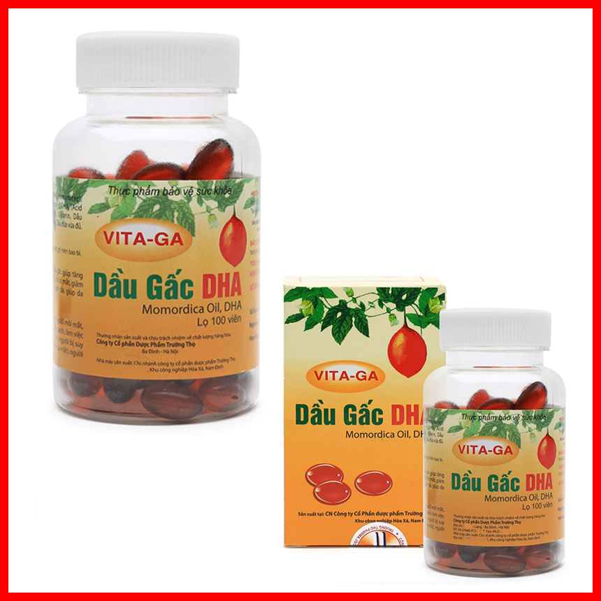 Thực phẩm chức năng dầu gấc DHA Vita-Ga có tác dụng bổ sung Beta-Caroten giúp tăng cường thị lực, giảm mỏi mắt, nhức mắt, giảm quá trình lão hóa, khô da, sạm da, giúp da mịn màng, tươi trẻ.