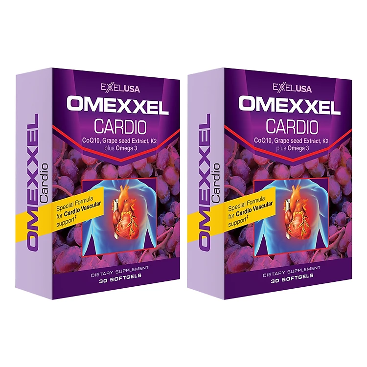 Được nghiên cứu và bào chế tại Mỹ, viên uống hỗ trợ tim mạch Omexxel Cardio với các thành phần gồm: Coenzym Q10, chiết xuất hạt nho, Acid Folic, Vitamin K2, B6, B12, kết hợp Omega 3 đặc biệt giúp tăng cường sức khỏe tim mạch, giảm nguy cơ bệnh tật và giúp kéo dài tuổi thọ.