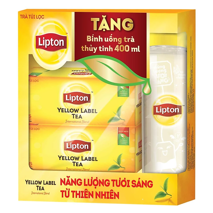 Combo 2 Hộp Trà Lipton Nhãn Vàng Yellow Label (2g x 25 gói) Tặng Bình Nước