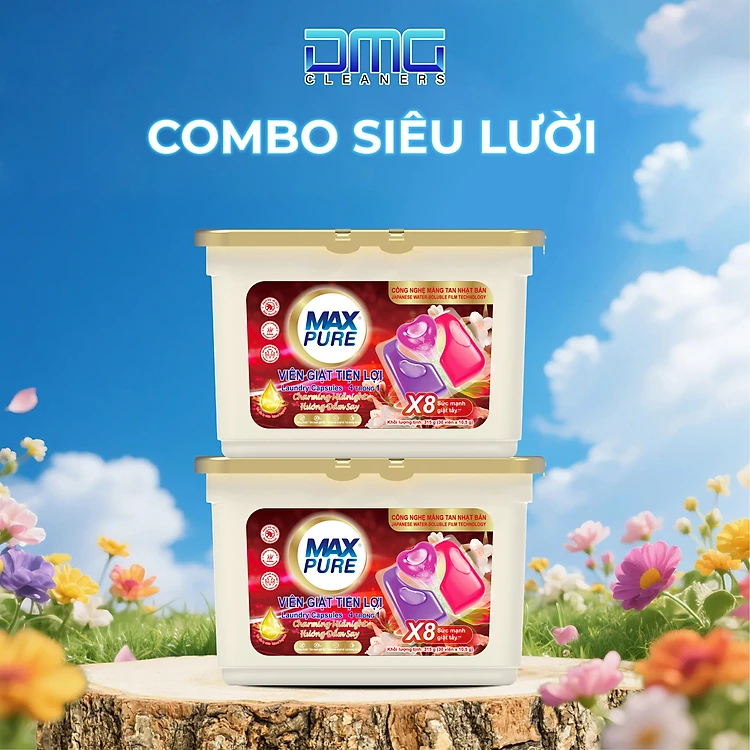 Combo Siêu Lười Maxpure: 2 Hộp Viên Giặt 4in1 Hương Đắm Say | Đậm Đặc, Sạch Sâu, Thơm Lâu