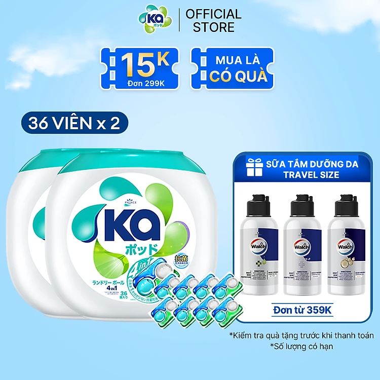 Combo 2 Hộp Viên Giặt Xả Đa Năng 4 Trong 1 KA Universal (36 Viên/ Hộp)