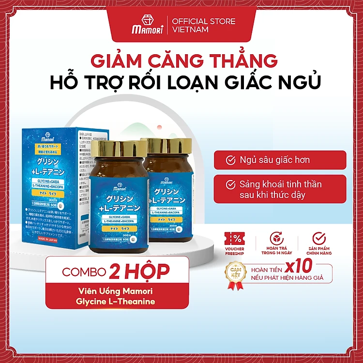 Combo 2 Hộp Viên uống MAMORI Glycine L-Theanine giúp giảm căng thẳng - stress, Hỗ trợ ngủ ngon, ngủ sâu giấc (60 Viên)