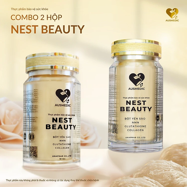 COMBO [2 HỘP] VIÊN UỐNG YẾN SÀO NEST BEAUTY HỖ TRỢ NGĂN NGỪA LÃO HÓA - YẾN SÀO 9.000MG, NMN 16.200MG