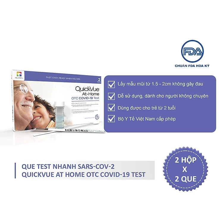 Combo 2 hộp x 2 kit QuickVue Covid-19 Test nhanh tại nhà (lấy mẫu mũi chỉ 1.5 - 2cm không gây đau) - Hàng Mỹ chính hãng