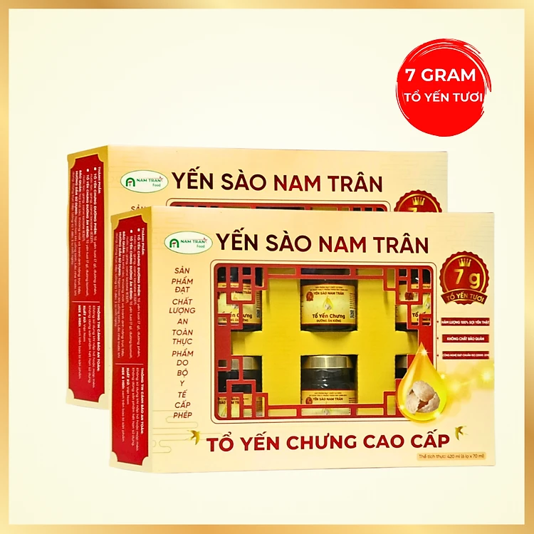 [Combo 2 Hộp ] Yến Chưng Đường Ăn Kiêng NAM TRÂN 7 gram Tổ Yến Tươi, cung cấp dinh dưỡng. Hộp ( 6 lọ x 70 ml )