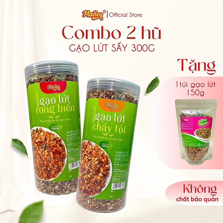 [COMBO 2 HŨ 300G] Gạo lứt giảm cân ăn liền Mailey - gạo lứt sấy rong biển/ cháy tỏi ăn kiêng healthy