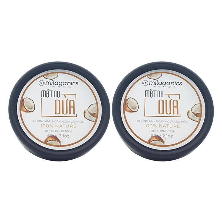 Combo 2 Hũ mặt nạ dừa dưỡng ẩm, ngăn ngừa lão hoá Milaganics 60g với các thành phần thiên nhiên lành tính như: Dầu Dừa tinh khiết, dầu Cám gạo, nha đam tươi, chiết xuất cây phỉ, củ cải đường, Kaolin… được bổ sung thêm các hoạt chất dưỡng ẩm chuyên sâu như: Niacinamide, Hyaluronic acid, Vitamin E là lựa chọn hoàn hảo để nuôi dưỡng, cấp ẩm chuyên sâu cho làn da, cải thiện tình trạng mất nước, giúp da kiềm dầu và hỗ trợ điều trị mụn hiệu quả hơn.