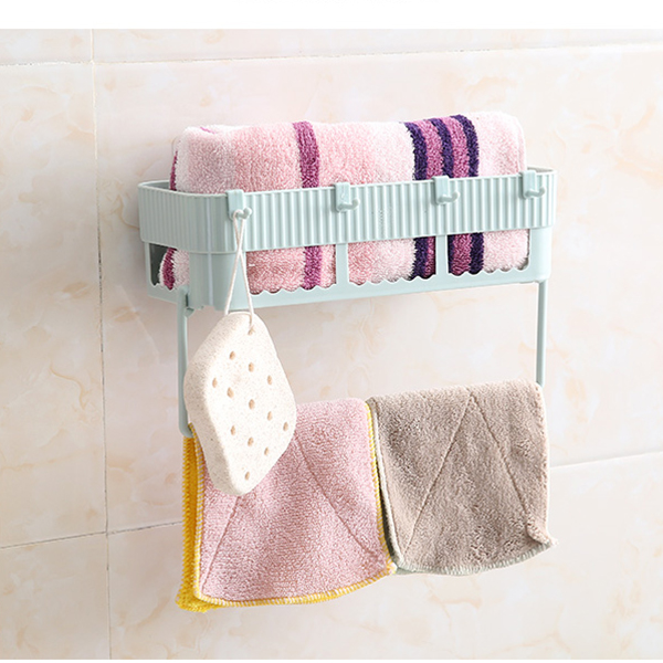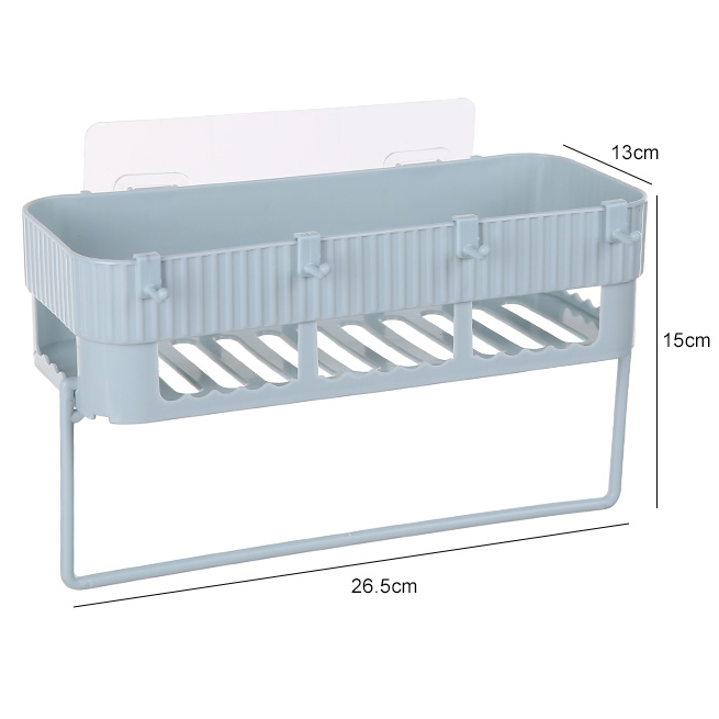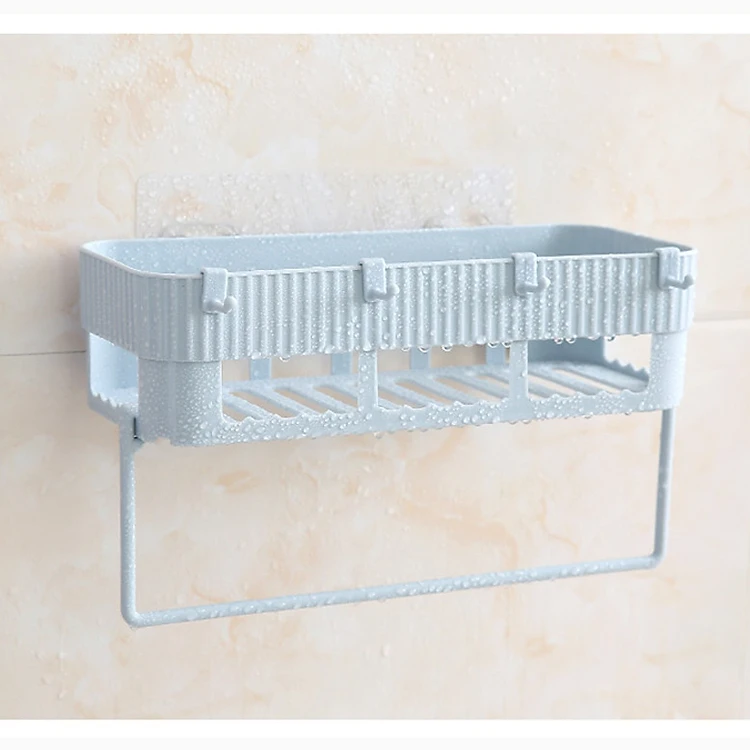 Kệ chữ nhật hút chân không để đồ dùng trong nhà vệ sinh kèm giá treo khăn lau, bông tắm.