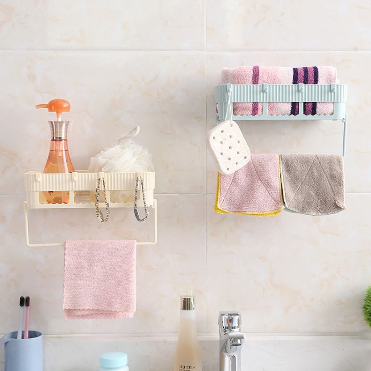 COMBO 2 Kệ chữ nhật hút chân không kèm giá treo khăn - Màu ngẫu nhiên