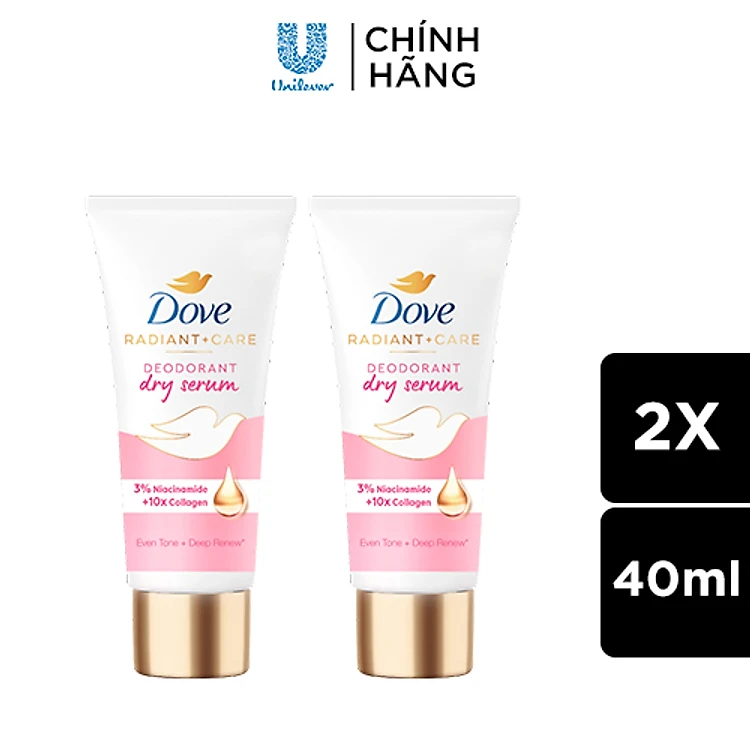 Combo 2 Kem ngăn mùi tinh chất serum vùng cánh cao cấp Dove dành cho nữ với 3% Niacinamide mờ thâm thu nhỏ lỗ chân lông 40ml