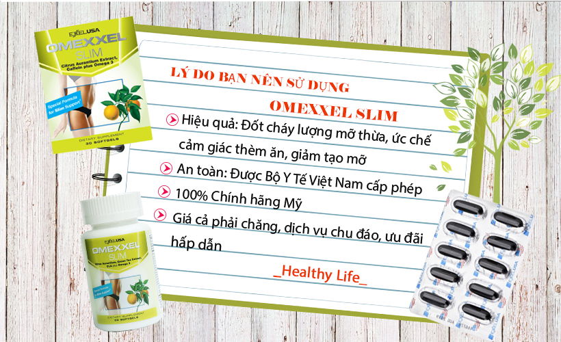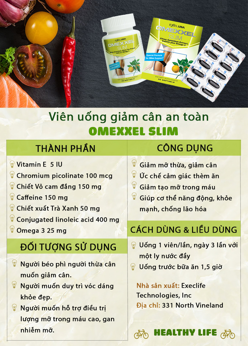 - Viên uống giảm cân an toàn Omexxel Slim có sự kết hợp của Tinh chất trà xanh và Caffeine vì theo nghiên cứu sự kế hợp của Caffeine và tinh chất EGCG trong trà xanh giúp tăng khả năng đốt cháy chất béo đến 33% giúp thể cải thiện và duy trì cân nặng ở những trường hợp thừa cân và điều hòa cân nặng ở những bệnh nhân béo phì.