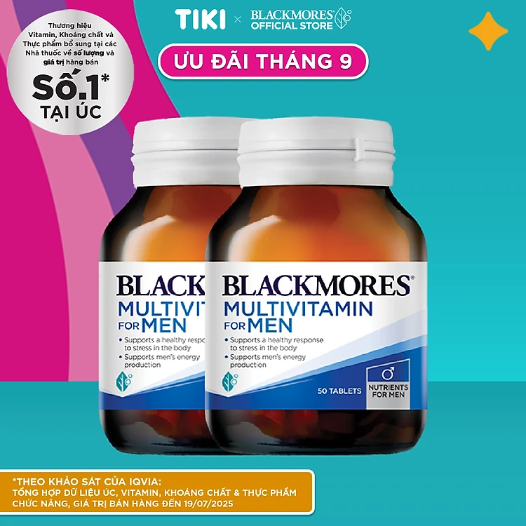 Combo 2 Lọ Vitamin Tổng Hợp Hỗ Trợ Sức Khỏe Nam Giới Blackmores Multivitamin For Men 50 Viên/Lọ