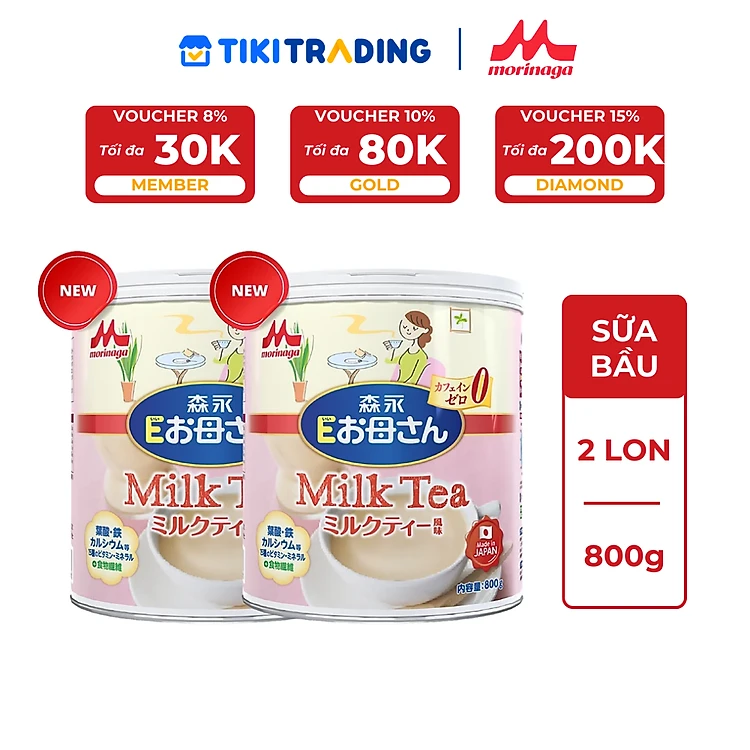 Combo 2 lon Sữa Bầu Morinaga E-Okasan Hương Trà Sữa 800g