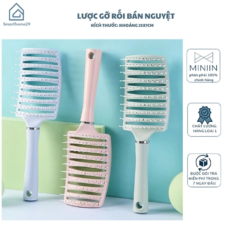 Combo 2 Lược Bán Nguyệt Chải Tóc Gỡ Rối Đa Năng-Lược Chải Làm Tạo Phồng Chân Tóc Lược Massage Đầu Mini (Màu ngẫu nhiên)