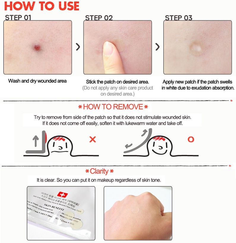 - Sau khi rửa mặt sạch và lau khô, bóc 1 miếng dán lên nốt mụn, rồi ấn nhẹ để đảm bảo miếng dán đã bám chặt trên da.