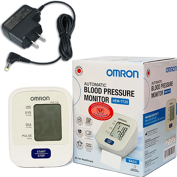 Combo 2 Món - Máy Đo Huyết Áp Bắp Tay Omron HEM 7120 + Adapter Cấp Nguồn Điện Khi Không Dùng Pin (Chính Hãng Omron) - Thương Hiệu Máy Đo Huyết Áp Số 1 Nhật Bản