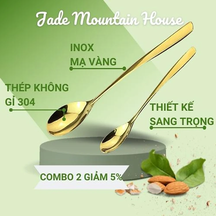 Combo 2 Muỗng Inox 304 Jade Moutain Mạ Vàng Cao Cấp Hình Thức Sang Trọng Bắt Mắt
