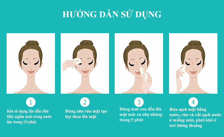 - Sau khi đắp mặt nạ, tháo lớp mặt nạ ra, dùng miếng mút rửa mặt lau rửa trực tiếp lên da mặt, mát xa nhẹ nhàng, động tác này cùng giúp lấy đi các tế bào chết còn bám trên da.