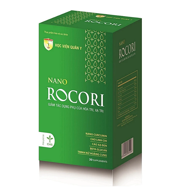 - Công thức Nano Rocori độc đáo kết hợp Nano Curumin hàm lượng cao nhất hiện nay 250 mg với các thành phần quý là Xạ Đen, Linh Chi, Trinh Nữ Hoàng Cung, Beta Glucan.