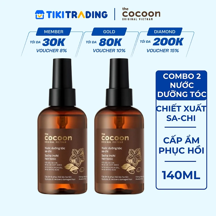 Combo 2 nước dưỡng tóc Sa-chi Cocoon giúp cấp ẩm và phục hồi hư tổn 140ml/chai