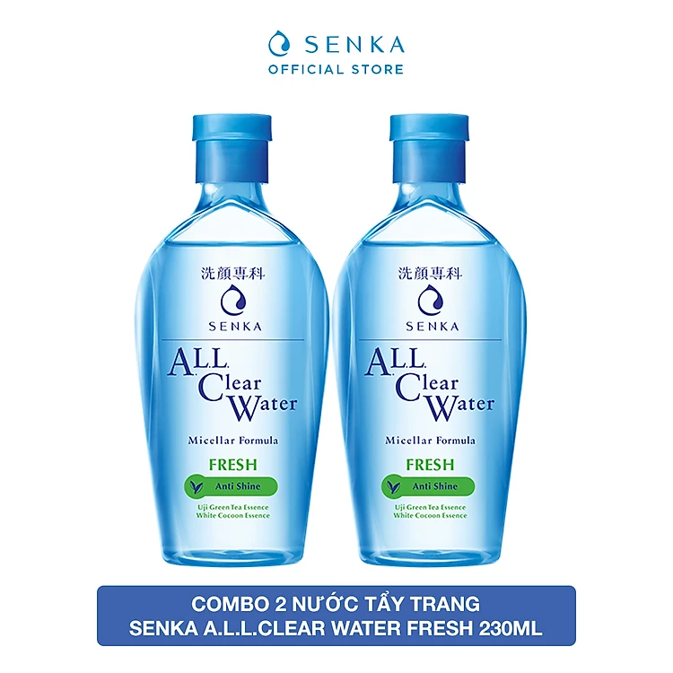 Nước tẩy trang sạch sâu thoáng mịn giảm mụn, kiềm nhờn tươi mát với tinh chất trà xanh Uji tươi mát Senka A.L.L.Clear Water Fresh 230ml với công thức Micellar giúp làm sạch bụi bẩn, bã nhờn, lớp trang điểm lâu trôi tận sâu lỗ chân lông một cách hiệu quả mà vẫn dịu nhẹ cho làn da.